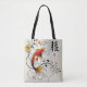 "Carry elegance and blessings with the Graceful Fortune tote bag, featuring a stunning orange-gold koi fish surrounded by delicate black vines, vibrant flowers, and the Chinese character 福 (Fu) for good fortune. This lightweight yet durable tote is perfect for daily errands, shopping, or as a stylish accessory for the Lunar New Year season. Celebrate prosperity and elegance wherever you go."