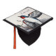 Celebrate your achievement with this stylish swallow graduation cap topper, designed to instill a sense of freedom. This original topper, showcasing an ornate Irezumi style design, illustrates a detailed bird in flight with its wings outstretched in a display of beauty, power, and agility. It's a striking addition to your cap and gown with the vintage hues melding with the organic texture of the canvas. This topper represents growth, freedom, and new beginnings to commemorate your journey.
