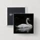 This button features a photograph of a beautiful white swan. The swan is a Mute swan. It looks very beautiful as it swims gracefully along a calm river.