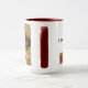 15 oz. mug with pictures of white/grey/black cat on her pillow and on top of the cupboard looking down. Second picture has a caption "I see you".