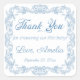 Ready to seal your gratitude with style? Our Gracious Dusty Blue Baroque Frame Baby Shower Square Sticker is just the thing! We like to imagine this elegant design was once the final flourish on a heartfelt letter from a bygone era, now perfected for your modern celebration. Its delicate dusty blue baroque frame beautifully surrounds your 'Thank You for showering our little baby!' message. Perfect for sealing envelopes, adorning favours, or adding a special touch to any baby shower or christening. Just peel, stick, and let the compliments roll in!