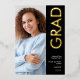 Moderne Grad 2025 Photo Black Gold Real Foil Faire-part.. La classe du vrai papier en or pour la typographie pivotée, Grad et l'année, avec le reste du texte en blanc incluant votre message sur le dos sur un arrière - plan noir. Remplacez les photos de chaque côté par vos deux favoris.