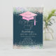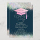 Grad Cap,Colourful Confetti Navy Blue Graduation Invitation