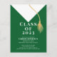 Start off your event right with our trendy & stylish white grad cap & gold tassel set on a green background graduation party post card invitation. Perfect graduation invitation for a high school graduation or college graduation. Just fill in your information add your photo and you're all set to go. Visit our shop to view this graduation invite in a large assortment of school colours