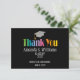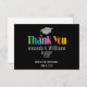 This is a modern and simple design with a grey graduation cap, yellow gold tassel, white text and black background. Colourful "Thank you” image. Yellow gold is printed colour, not metallic foil.