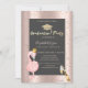 Grad Cap,Wine,Flamingo Rose Gold Graduation Invitation