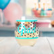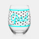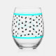 Graduation party set of glasses (or come as singles) with custom text in aqua blue. Black caps surround stemless wine glasses outlined in bright, aqua blue at top and bottom. "Grad" text can be changed to the name of the graduate, or other text like "Congrats" but it will print the same on all glasses.
