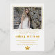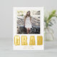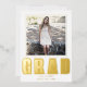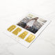 Introduire une faire-part contemporaine et sophistiquée de graduation pour la Classe de 2025, ornée d'une touche d'opulence à travers l'utilisation de feuille d'or moderne et élégant. Ce design exquis présente l'inscription "GRAD" proéminente en feuille d'or brillante, magnifiquement complétée par la photo captivante du diplômé contre un arrière - plan blanc immaculé. En tournant le dos, une photo supplémentaire rend hommage au faire-part, tout en fournissant une plate-forme pour inclure tous les détails essentiels de cette célébration de graduation capitale.
