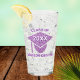 Create your own graduation glass with a purple design and the classic graduation cap and tassel motif in faux purple glitter for a one of a kind keepsake. Three text templates make it easy to personalize these tall graduation glasses - change the arched purple text at the top from CLASS OF to CONGRATULATIONS as you wish. The bottom purple text is perfect for adding your grad's name and then edit the graduation year in the middle of the mortarboard and tassel design or clear it away if you prefer an even simpler design. Create a set of personalized graduation glasses for a group of friends, a full set for the family for the ultimate graduation dinner or maybe just one as a keepsake for your favourite niece or nephew. The modern yet elegant faux purple glitter design will make these custom graduation glasses a unique and thoughtful gift.