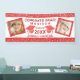 Personalize this picture graduation party banner with two photos and your custom text for a one of a kind faux red glitter decoration for your grad's celebration. A border of faux glitter in red at the top and bottom frames the center of this party sign where red text on the white backgrounds lets your message really pop. Two slightly angled photos are complimented by two smaller angled cap and tassel designs in faux red glitter that flank the graduation year in a simple, bold font. Add your graduates name and high school or a short message in red text and add your photos for a one of a kind custom graduation party banner that will be the centerpiece of the party.