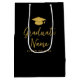 Grad Name Script with Cap - Black Gold Graduation Medium Gift Bag