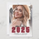 Classic Minimalist Graduation Announcement & Party Invitation. The front features a full-page photo with a white gradient at the bottom that fades seamlessly into the image. Over the gradient, "2025" appears in a bold, classic school-style font in red or maroon. Above the year is "Graduate" in a script font, which can be changed to "Class of" if preferred. Below the year, the graduate's name and school name are elegantly featured. The current design uses black and red tones for a timeless and sophisticated look, but all colours can be customized to match school colours or personal preferences.