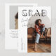 Carte de faire-part de graduation élégante et mystique à envoyer à la famille et aux amis. Il y a une arche blanche autour de votre photo. Il dit "GRAD" en haut avec une police de thème céleste décorative.
