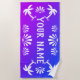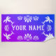 Pretty stencil palm trees and scallop sea shells in white on a blue to ultraviolet background. Personalized with your name in big, trendy hand written typography font. Great for that beach vacation.