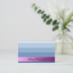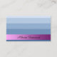 This delicate and classy card is based on gradient stripes coloured blue, and a horizontal pink banner carrying your name. The rear side is clean with black text on white background, but where your name is coloured rose red, with a black shadow effect.