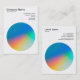 A business card template with an attractive bold gradient circle motif. Company name, business type and address on the front with name, job title, telephony, web and email addresses on the back, with the same layout. A sharp modern abstract geometric design suitable for many types of businesses and uses.