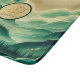 This design features a beautiful gradient of emerald and kelly green with shimmering glitter accents. Inspired by Chinese painting, it includes soft watercolor effects, a bright sunrise, and a glowing sun. A customizable monogram in the centre makes it personal and unique. Elegant and versatile for any product or occasion.