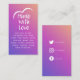 The card features a black line drawing heart and fun text saying "Made With Love" with social links on the back for you to add your own social handles, on a white background.