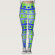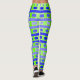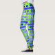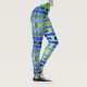 These leggings have a geometric design of lines in shades of blue and green woven to make a plaid.