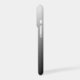 Elegant one colour silvery grey gradient design. Name is printed slightly angled on bottom part.