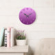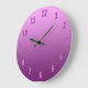 A colourful yet quite simple wall clock design, all based on one colour: Pink. The digits are regular numbers with tiny black outline. The digits and background are opposite gradient, making the digits stand out in a cool way.