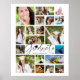 Graduate 19 Photo Collage Script White Custom Colour Poster Print. Create a photo memory poster print utilizing this easy-to-upload photo collage template with 19 pictures to celebrate your graduate and/or display at a graduation party or as commemorative keepsake. The design features a modern, elegant script typography GRADUATE title design accented with a custom colour graduation cap and tassel and personalized with your graduate's name and class year in your choice of colours (shown in black on white). The text, graphic title, graduation cap, tassel and background colours can be changed to school colours or coordinating party theme colour or choose a styled graphics background. OPTIONS: The sample is shown in a 16x20" size on Value Paper (Matte); other standard and custom print sizes, paper quality and framing, Instant Digital Download file for printing locally or transferring the design to a foam board, banner, canvas or other product options are available on the ordering page. RESIZING TIP: Choose Custom Size for even borders by changing the height and width proportionately AFTER clicking the UNLOCK icon (looks like a chain link). ASSISTANCE: For help with design modification or personalization, colour change, resizing or transferring the design, contact the designer BEFORE ORDERING via the Zazzle Chat MESSAGE tab or email makeitaboutyoustore@gmail.com.