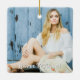 Graduate 2 Photo Red Stars Brush Script Keepsake Ceramic Ornament