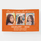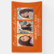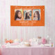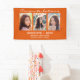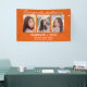 This custom graduation banner to celebrate your graduate features a photo collage of three photos on an orange background. Above in white script it reads "Congratulations" and below "Graduate 2023" with your name and school to personalize. Designed by artist Susan Coffey.