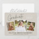 This modern graduation invitation showcases three photo spaces highlighting this year’s graduate. The design is accented with trendy, handwritten-style typography on a light tan background. The back offers custom text to share all of your party details.