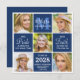 Graduate 5 Photo Monogram Navy Blue Graduation Invitation