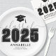 Class of 2025 Bold Elegant Black and White Graduation Paper Plate.