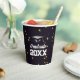 Celebrate the achievements of the graduate in style with our Graduate Blue Gold Glitter Confetti Graduation Cap Paper Cups. These festive cups are perfect for adding an extra touch of sophistication to any graduation party or celebration. With their elegant design featuring faux gold glitter details, dark blue background, and party confetti, these cups are sure to impress both the graduate and their guests. The mortarboard image adds a touch of tradition and authenticity to the celebration, making it a perfect choice for any boy, girl, or unisex event. Each cup can be personalized with the graduate's custom year. Celebrate the graduate's success in style with our elegant and festive graduation cups. For matching graduation party supplies, view our collection on this page!