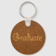 Graduate Brown Cowhide Leather Texture Look Keychain