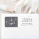 Cette étiquette d'adresse de retour est conçue pour l'invitation envoyée par le diplômé et des notes de remerciement. L'arrière - plan est gris foncé avec un texte de calligraphie blanche à la mode qui dit : diplômé. Le texte personnalisé vous permet d'ajouter le nom du diplômé et son adresse de retour.