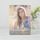 This graduation party invitation offers a vertical photo frame that fills the front and is accented with a modern handwritten style text overlay: GRADUATE. The backside offers second photo frame and custom text for your party invite.