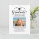 Celebrate your graduate with this elegant graduation party invitation featuring a flourished "Graduate" calligraphy script accented by a grad cap icon, a senior portrait, and all party details on a clean white layout. The simple, typography-driven design lets the beautiful lettering and your photo take centre stage with a coordinating royal blue card back. Fully customizable text throughout.
