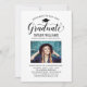 Celebrate your graduate with this elegant graduation party invitation featuring a flourished "Graduate" calligraphy script accented by a grad cap icon, a senior portrait, and all party details on a clean white layout. The simple, typography-driven design lets the beautiful lettering and your photo take centre stage with a coordinating teal card back. Fully customizable text throughout.