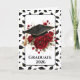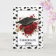 Graduation card is shown with a lovely red rose and cap print.