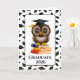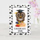 Graduation card is shown with a wise owl on books print.