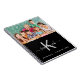 A chic black background. Personalize and add your own photo, a name, monogram letter and a text. The name is written in white with a large modern hand lettered style script with swashes. The monogram letter in grey. To keep the swashes only delete the sample name, leave the spaces or emoji's in front and after the name