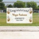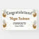 A Hanging Graduation Congratulations Banner designed with gold coloured text on a white background with gold and white balloons and sparkles. To personalize, simply replace the sample name with your details.