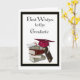 Congratulation graduate card. Red cap and diploma on stack of books.