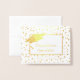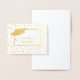 This folded note card is shown with a graduate cap print in gilded real gold foil.