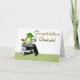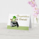 Congratulation card for the graduate with frog holding diploma, sitting on stack of books.