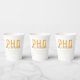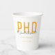 PhD graduation paper cups that feature the graduate’s name, field of study, and graduation date. They include the name in a handwriting script font and an orange and black design. Add these cups to your party as you celebrate this major milestone.