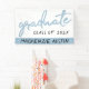 Chic graduation party overlay template with accents in a sophisticated white and robin egg blue palette. The design features a trendy blue hand-lettered brush script “graduate” typography on a white background along with the grad’s name and graduation year. Great way to honour your elementary middle school, high school, or college grad!  #classof2019 #bound