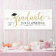 Elegant and glamourous custom graduation banner sign celebrates your grad in style! Design features a grad cap, "Graduate" in modern faux gold foil script, and modern custom text that can be personalized with the graduate's name, class year, and school.White background colour can be modified.