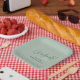 This modern graduation paper plates feature trendy, handwritten-style typography and space for the graduate’s name on a sage green background.