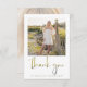 This design features a simple minimalist photo thank you, a minimal picture photo template, a stylish trendy calligraphy script, a gold gradient simple typography, a simple thank you card template,2 two photo picture layout, a vellum transparent photo overlay, a with love and gratitude, a flat double sided thank you, a any occasion thank you cards