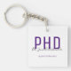 A PhD keychain that features the PhD’s name and field of study. The keychain includes the name in a handwriting script font and a purple and black design. Simply add the PhD’s info, add this item to your cart, and add your doctorate to your keys.